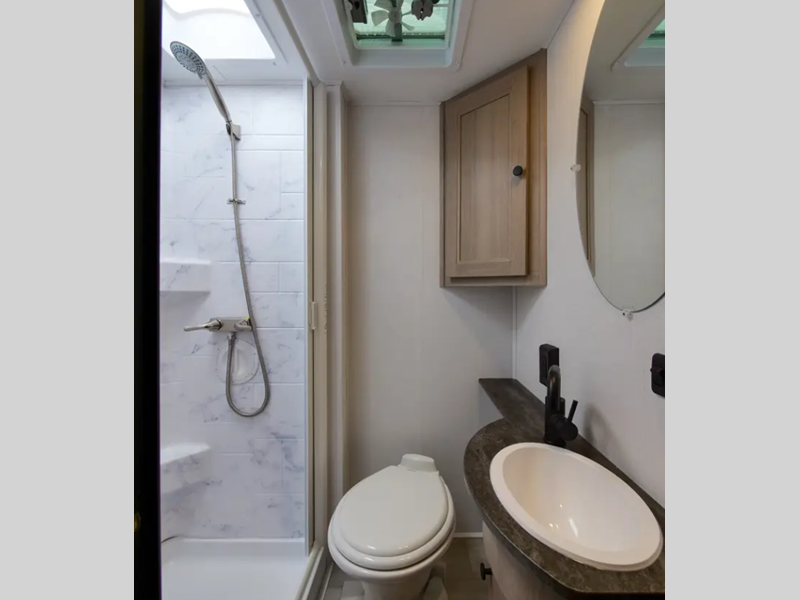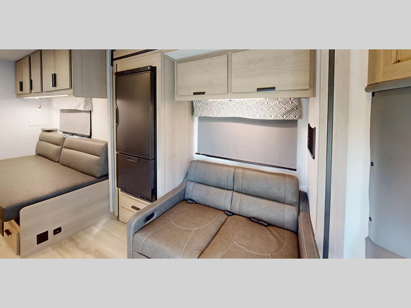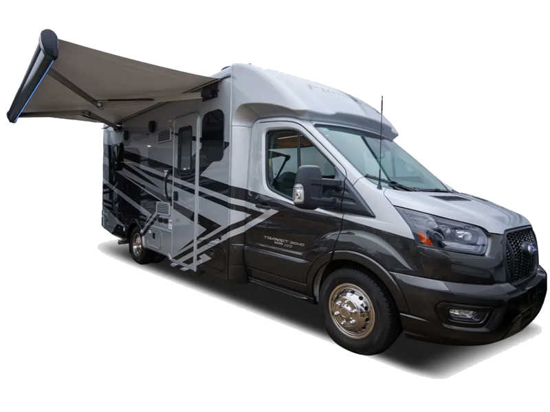 Sleeps 2 Slides 1 Length 26 ft 1 in Ext Width 7 ft 3 in Ext Height 10 ft 5 in Int Height 6 ft 6 in GVWR 10360 lbs Fresh Water Capacity 35 gals Grey Water Capacity 30 gals Black Water Capacity 28 gals Generator 2.8KW Onan Gas Fuel Type Gasoline Engine Ford EcoBoost 3.5L Chassis Ford Transit Fuel Capacity 25 gals Wheelbase 178 in Available Beds Two Twin Refrigerator Type LP Electric Refrigerator Size 5.3 cu ft Convection Cooking Yes Shower Size 24" x 36" Number of Awnings 1 Axle Weight Front 4130 lbs Axle Weight Rear 7275 lbs LP Tank Capacity 41 lbs Water Heater Type Truma Combi AC BTU 13500 btu Basement Storage 30.5 cu. ft. TV Info LR 12V LED Flat Panel TV, BR 12V TV Awning Info 15' Power with LED Lights Gross Combined Weight 13500 lbs Shower Type Standard Electrical Service 30 amp Similar Floorplans