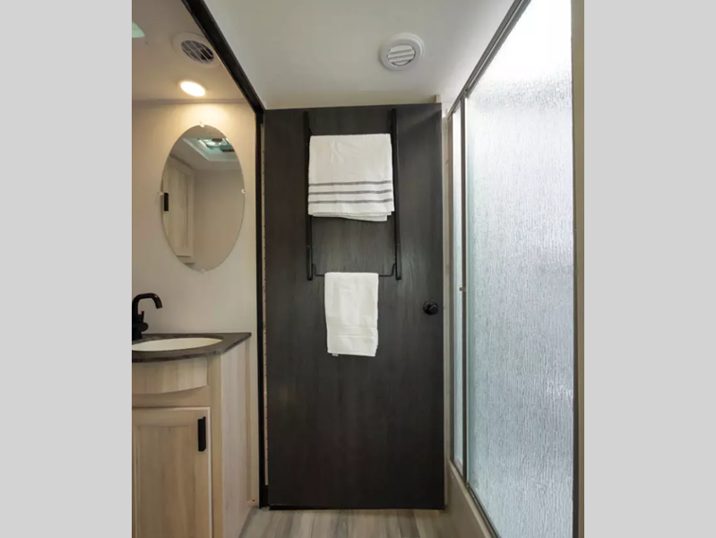 Each model includes the EZ Ryde premium suspension for an exception driving experience, along with a 10" touchscreen CarPlay/Android radio with USB and Bluetooth so you can listen to your favorite tunes as you travel. There is a keyless entry you are sure to appreciate plus blackout roller shades in the living room and bedroom for added privacy. Each coach also features a gel coat exterior fiberglass, a fiberglass roof and 2" aluminum framed laminated sidewalls for added durability.