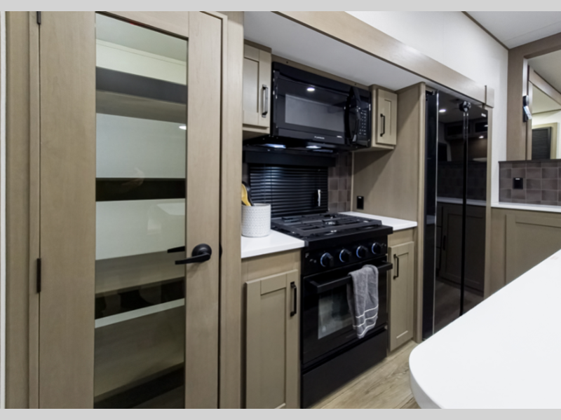 Sleeps 5 Slides 3 Length 34 ft 9 in Ext Width 8 ft Ext Height 12 ft 6 in Hitch Weight 2200 lbs GVWR 13995 lbs Dry Weight 11100 lbs Fresh Water Capacity 74 gals Grey Water Capacity 94 gals Black Water Capacity 47 gals Tire Size ST235/80R16RLE Furnace BTU 35000 btu Available Beds Queen Refrigerator Type 12V Refrigerator Size 16 cu ft Cooktop Burners 3 Shower Size 30" x 48" Number of Awnings 2 LP Tank Capacity 30 lbs Water Heater Type On Demand Tankless AC BTU 15000 btu TV Info LR 40" TV Awning Info 16' & 10'6" One-Touch Electric LED Axle Count 2 Washer/Dryer Available Yes Number of LP Tanks 2 Shower Type Standard Electrical Service 50 amp Solar Wattage 370 watts Similar Floorplans