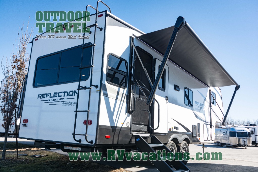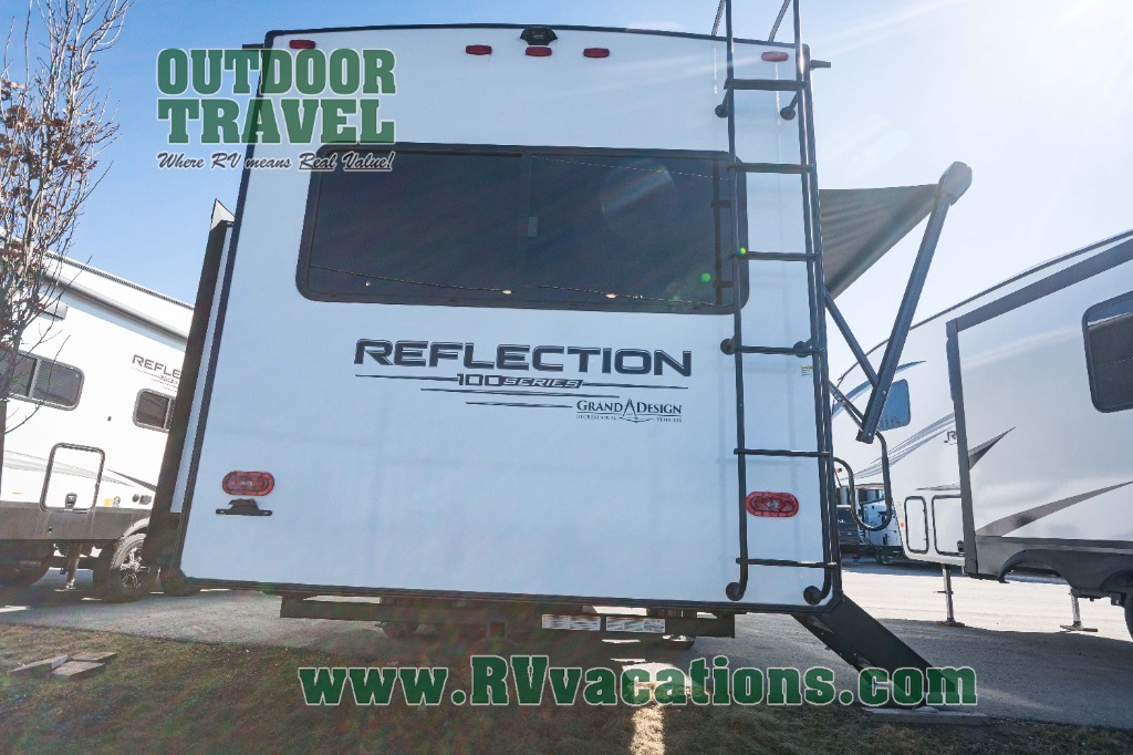 Each Reflection 100 Series fifth wheel by Grand Design is affordable and packed with luxury for unforgettable camping memories! The MorRyde CRE3000 suspension system and Goodyear Endurance tires will provide smooth towing from home to campground. And the solar package with a 180W solar panel, 60 Amp charge controller and 12V refrigerator will allow you to camp for longer periods of time and in more locations! A heated and enclosed underbelly with circulating heat is included in the Arctic 4-Seasons Protection Package, along with a double insulated roof and front cap, and thermofoil insulation under the holding tanks so you can camp all year long if you choose. You will appreciate having an on-demand water heater for hot showers after exploring, and the universal all-in-one docking station will let you monitor your RVs tanks levels and functions with ease. These models also include many luxurious interior features, such as premium Congoleum flooring, pleated shades, residential cabinetry, and matte black fixtures and hardware. Don't let the Reflection 100 Series fifth wheels pass you by!