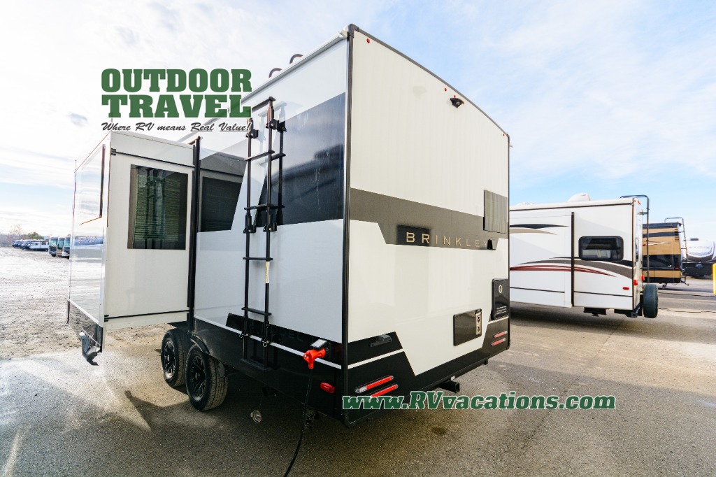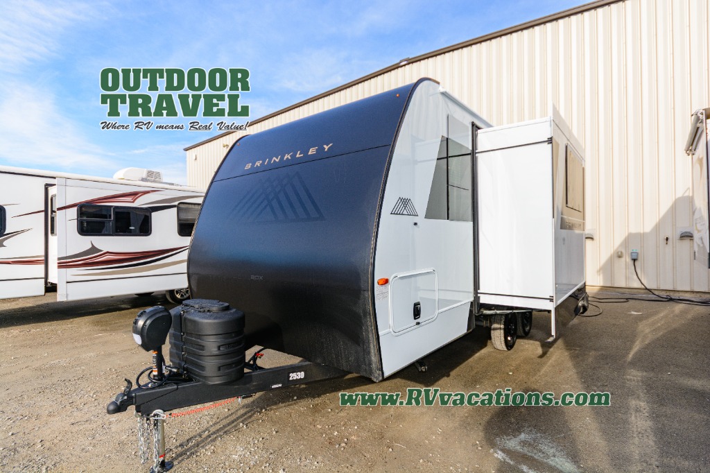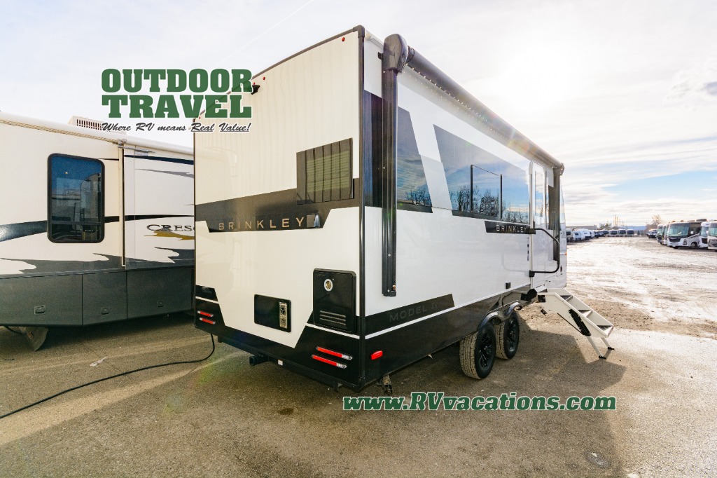 The Model Ix by Brinkley is your ticket to lightweight towing and exceptional features. This premium half-ton towable travel trailer features Brinkley's CraftSense building materials for a higher level of construction, along with a seamless laminated aluminum exterior with automotive grade full-body paint and modern graphics. You will stay powered up thanks to the power package with a 200-watt solar panel, and the Road Armor suspension will help provide a smooth tow from home to campground. The interior of the Model Ix includes premium residential cabinets with dovetail drawers, an ultra quiet and efficient A/C system, and a SoundCore Boom 2 Bluetooth waterproof speaker so you can listen to your favorite tunes indoors or outdoors!