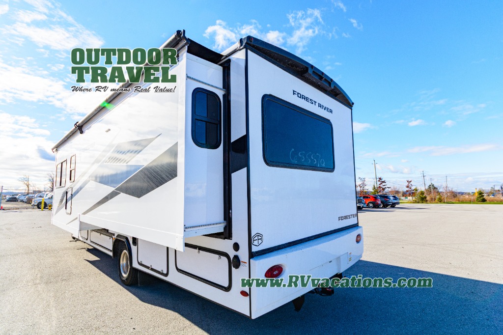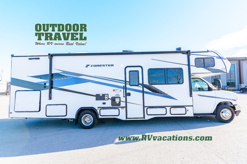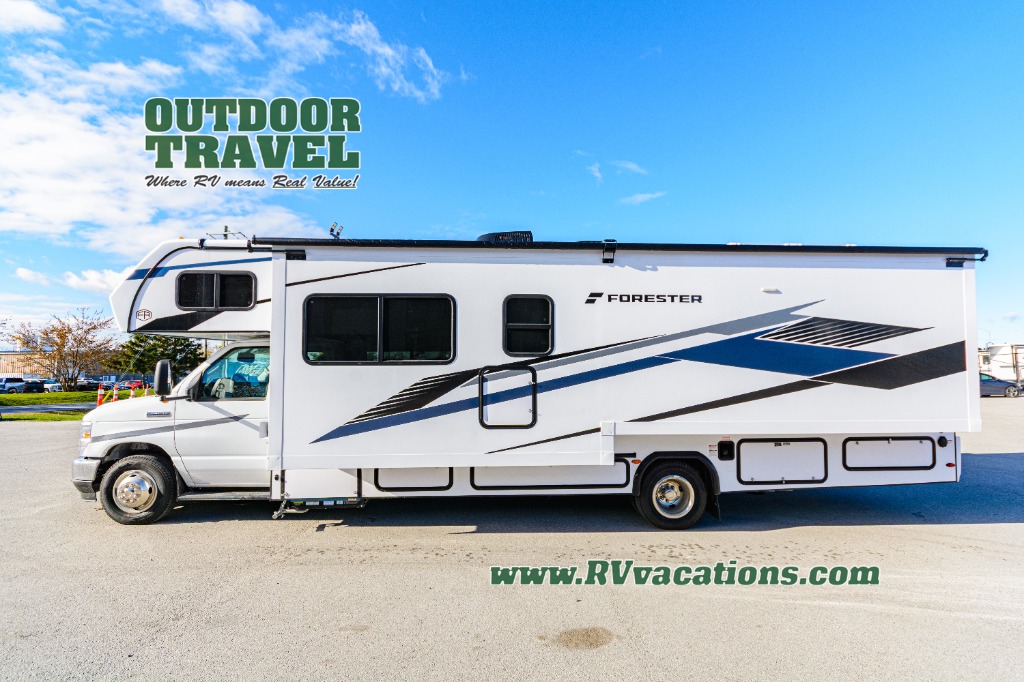 With any Forester Class C gas motorhome by Forest River, you will enjoy comfort at every turn! They offer a smooth ride with the EZ Ryde premium suspension system, and the ultra-leather captain's seats will ensure comfort wherever you go. There are heated, enclosed holding tanks and valves plus block foam insulation to enjoy four-seasons camping, and the gel coat exterior fiberglass is slick and easy to keep clean. A keyless entry comes standard for your convenience, along with a color back-up camera and side view cameras with a 3-way monitor for added safety when parking. The Forester motorhomes also include a Maxx Air multi-speed power fan with a cover, a shower skylight, a cordless 12V charging plate, plus black out roller shades for privacy any time.