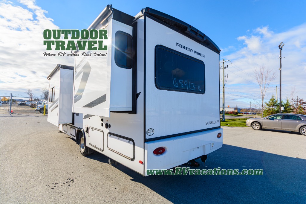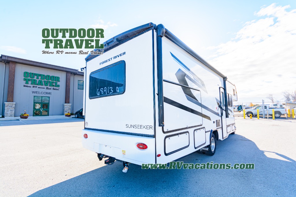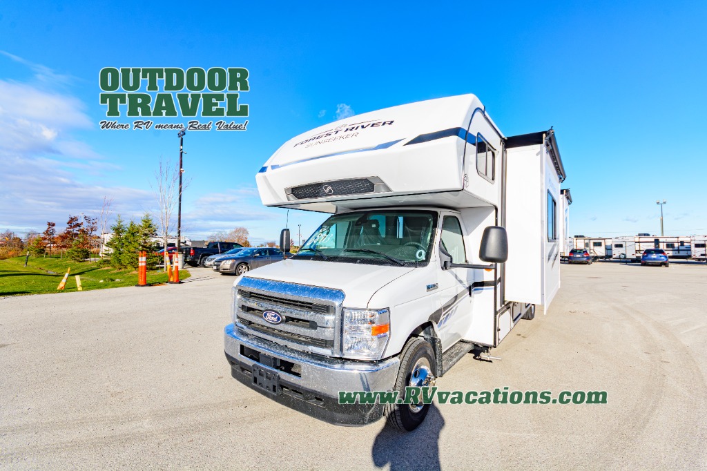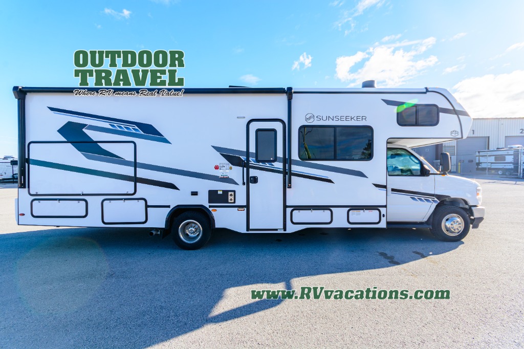 With any Sunseeker Classic Class C gas motorhome by Forest River, you will enjoy more features and quality construction at a great value! Each model comes standard with a fiberglass roof and 2" aluminum framed laminated sidewalls for maximum durability. The Winegard Air 360+ digital antenna is your all-in-one solution for your internet, TV, and FM signal needs, and you have Gateway 4G Wi-Fi capability too. The exterior has an outside shower, heated/enclosed tanks, Rotocast storage compartments, and a power awning with an LED light strip to name a few conveniences. Each drive will be made easy thanks to a 10" touchscreen CarPlay/Android radio with USB and Bluetooth, backup camera/side view cameras with a 3-way monitor, and Ultraleather seating for added comfort. You'll also love the black out roller shades, soft touch self-closing drawer guides, oxygen-infused shower head with a flexible extension, and many more interior comforts!