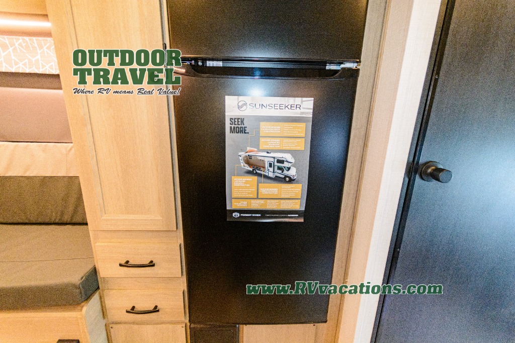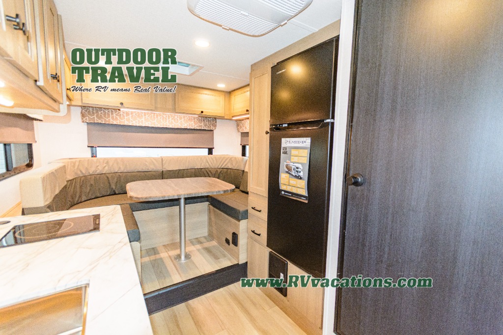 Each Forest River Sunseeker LE Class C gas motorhome comes with multiple features for your comfort! These great features are a backup/sideview cameras with three-way monitor, a fiberglass front cap, an LED lighting, a Winegard Air 360+ antenna, slide out awnings, and a 6 Gallon DSI gas/electric water heater. All of these premium features rest on a Superlite composite substrate, 2" aluminum framed laminated sidewalls, block-foam insulation, and a fiberglass roof. There is a satellite/cable connection, a 30,000 BTU furnace, a Maxx Air multi-speed power fan, and black-out roller shades.