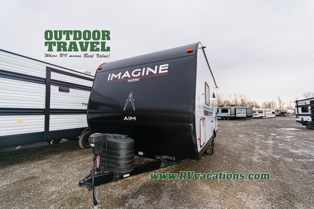 Aim for new destinations in one of these Grand Design Imagine AIM travel trailers! They are constructed to a superior standard with the 4-Seasons Protection Package that features a heated and enclosed underbelly with suspended tanks, a moisture barrier floor enclosure, a double insulated roof and front wall, and more. There is backup camera prep outside, along with a universal docking station, and a power tongue jack. You are sure to feel at home with residential cabinetry, premium window treatments, residential countertops, and a spacious walk-in shower to name a few comforts. The on-demand tankless water heater is a feature you won't want to camp without and the hi-definition LED TV will ensure you'll never go bored on rainy days. Each model also comes with four AIM packages; the Peace of Mind Package, The Ultimate Power Package, The 4-Season Protection Package, and the Solar Package!