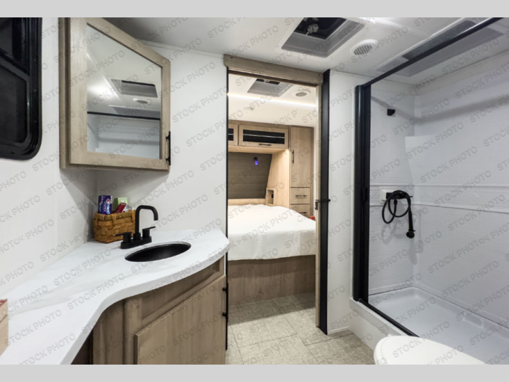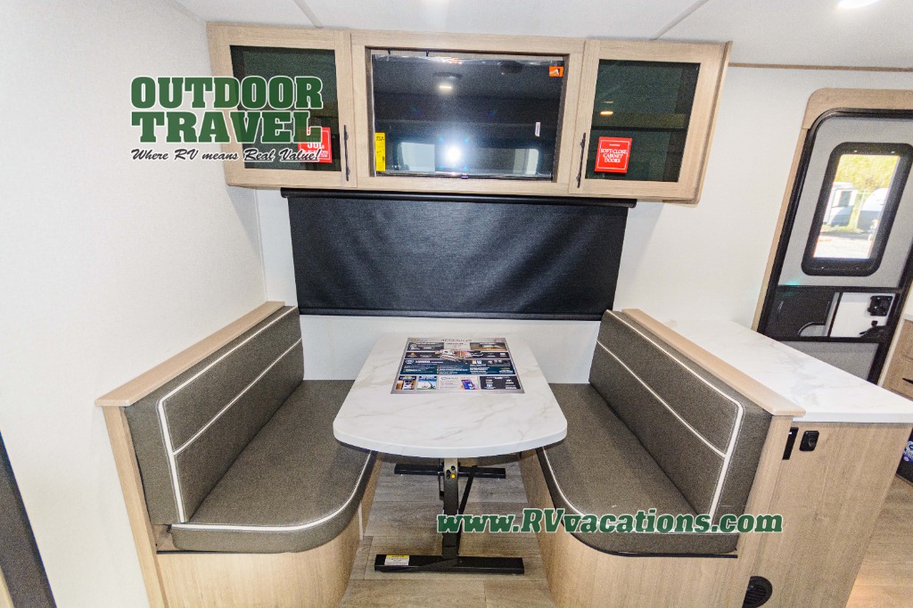 Treat yourself to a weekend of fun in this Imagine XLS travel trailer! Whether it's just you and your spouse, or you've chosen to bring along a group of friends, this trailer will meet the need. The front bedroom can sleep two people on the walk-around queen-size bed. The bedroom is quite functional because it not only contains the second exterior entry door, but it also has a private entrance into the walk-through bathroom since it is located on the other side of the bathroom. The booth dinette is functional too because it can transform from a dining location into a sleeping location, and the theater seating is directly across from the LED TV for easy viewing.