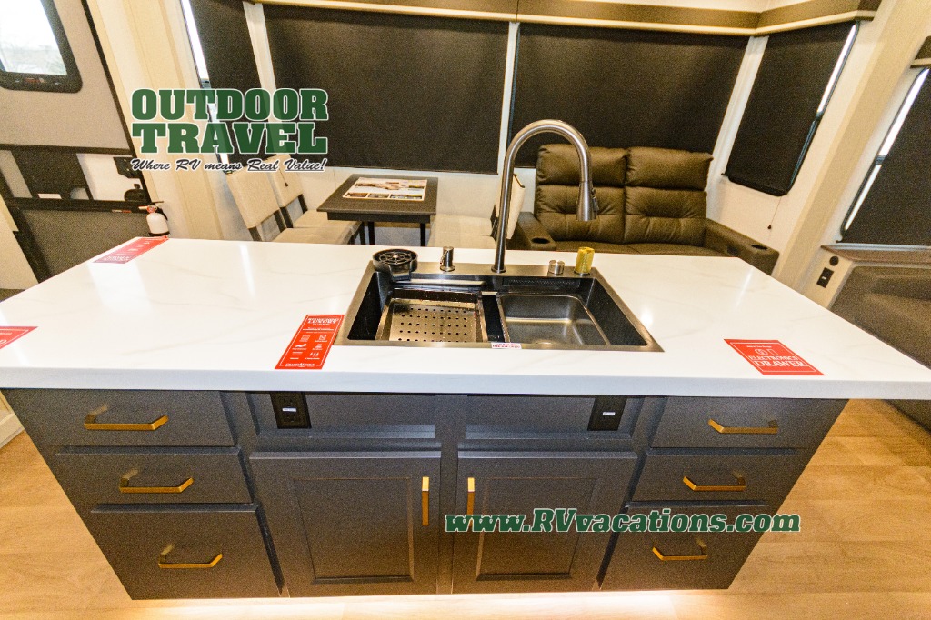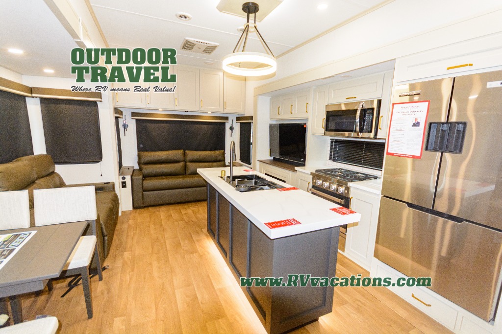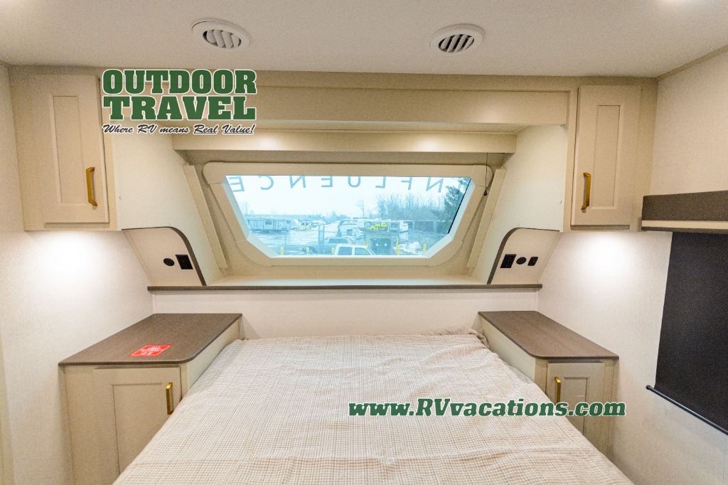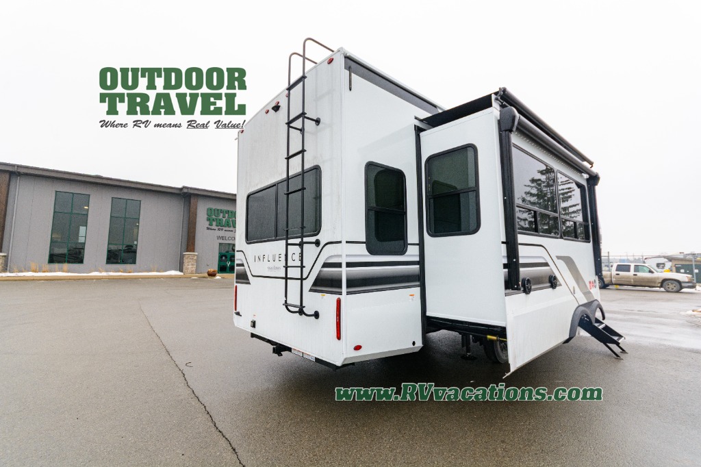 Any Grand Design Influence fifth wheel features five-sided aluminum cage construction with a walk-on roof and a fully enclosed underbelly with heated tanks and storage for all weather camping. For peace of mind, the MORryde CRE3000 Suspension system will provide safe and smooth towing, and the 101" widebody construction offers all the room you need and that is before multiple slides are fully engaged. You will appreciate the Keyed-Alike locks, slam-latch baggage doors with magnetic door catches, exterior security light, and SolidStep entry steps. On the inside, Congoleum flooring, premium roller shades for privacy, a hallway handrail for safety, and nightstands with USB ports to keep all of your electronics fully charged. You will also love the on demand tankless water heater when showering, plus the added heat and ambiance from an electric fireplace, and so much more!