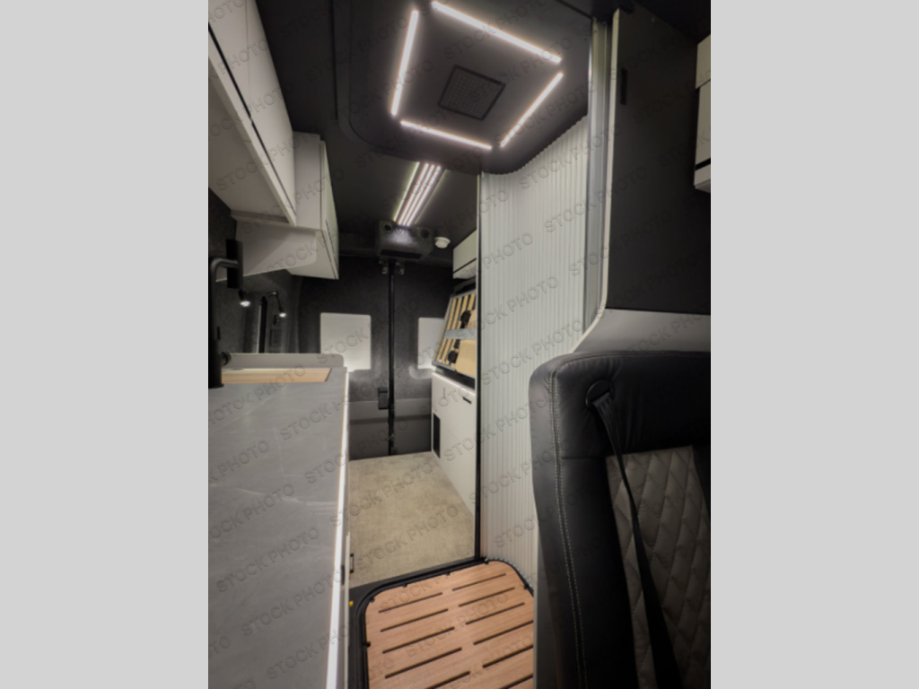 This luxury motorhome for the modern adventurer will be your favorite! The flip-up bed provides a comfortable sleeping area, perfect for restful nights on the road. The entertainment spot is provided in the motorized projector screen, which is ideal for movie nights, sporting events, or presentations, making it a great way to unwind or entertain friends and family. The bathroom provides a private and convenient space for personal needs, and the kitchen features an undermount cooktop, perfect for preparing your favorite meals, 3.2 cu. ft. refrigerator for keeping perishables fresh, and a sink for easy cleanup. The exterior awning provides shade and protection from the elements, while the sliding door offers easy access and added convenience.