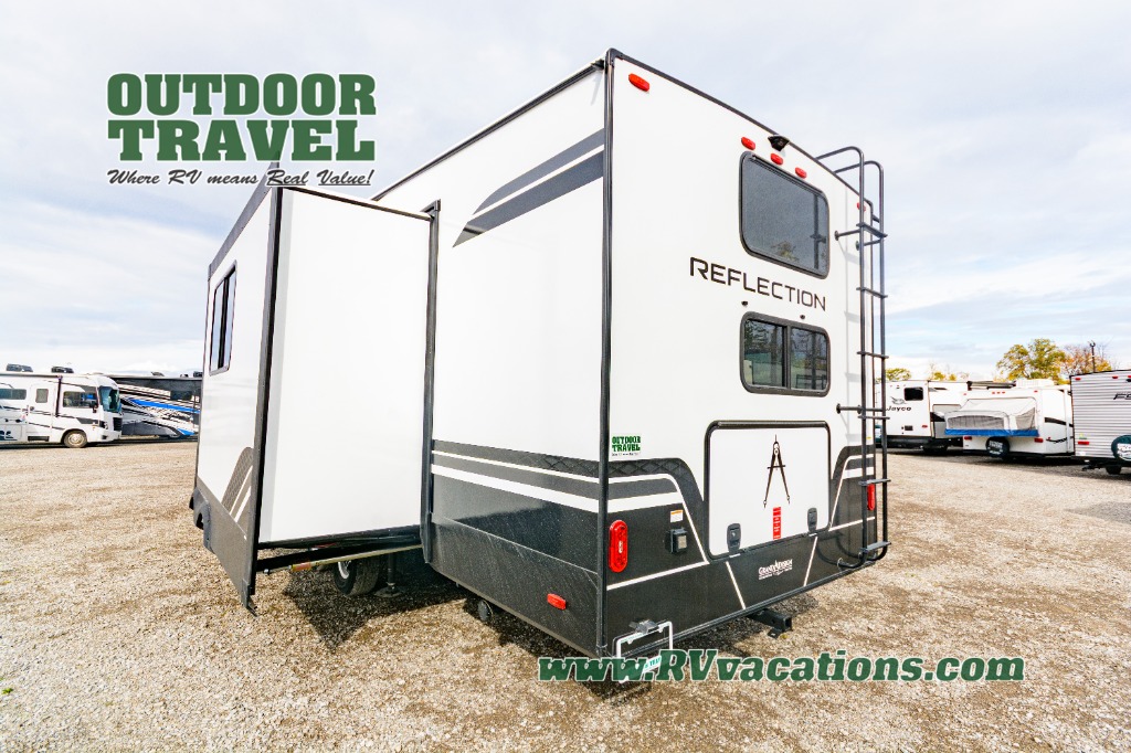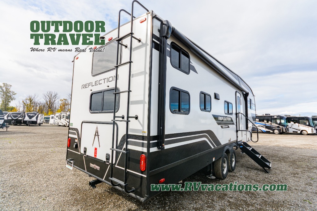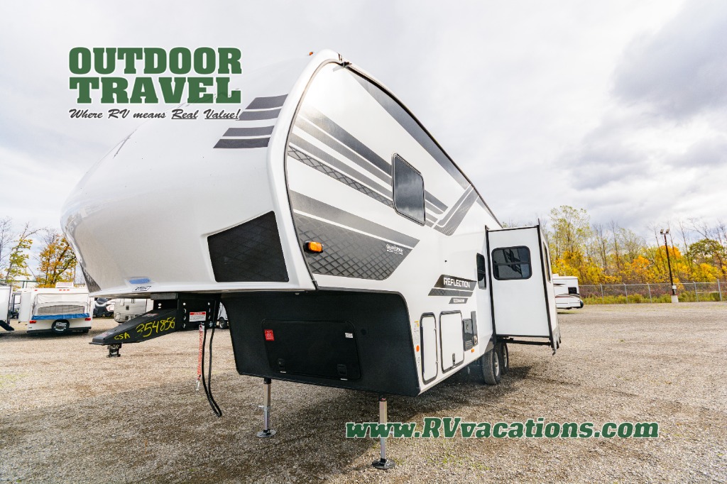 Each Reflection 100 Series fifth wheel by Grand Design is affordable and packed with luxury for unforgettable camping memories! The MorRyde CRE3000 suspension system and Goodyear Endurance tires will provide smooth towing from home to campground. And the solar package with a 180W solar panel, 60 Amp charge controller and 12V refrigerator will allow you to camp for longer periods of time and in more locations! A heated and enclosed underbelly with circulating heat is included in the Arctic 4-Seasons Protection Package, along with a double insulated roof and front cap, and thermofoil insulation under the holding tanks so you can camp all year long if you choose. You will appreciate having an on-demand water heater for hot showers after exploring, and the universal all-in-one docking station will let you monitor your RVs tanks levels and functions with ease. These models also include many luxurious interior features, such as premium Congoleum flooring, pleated shades, residential cabinetry, and matte black fixtures and hardware. Don't let the Reflection 100 Series fifth wheels pass you by!