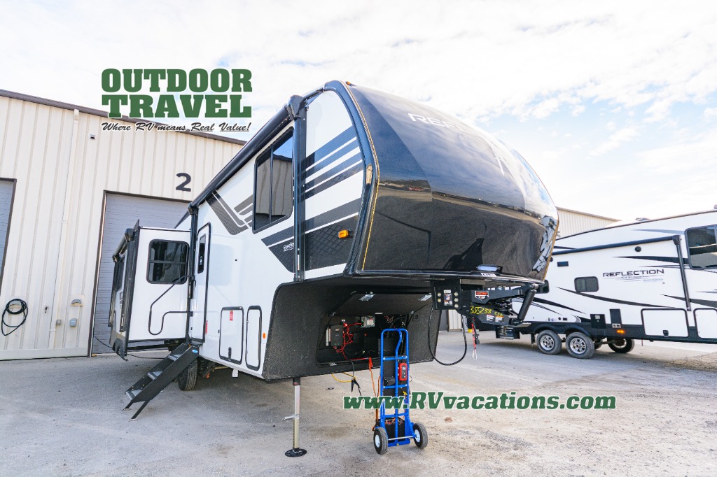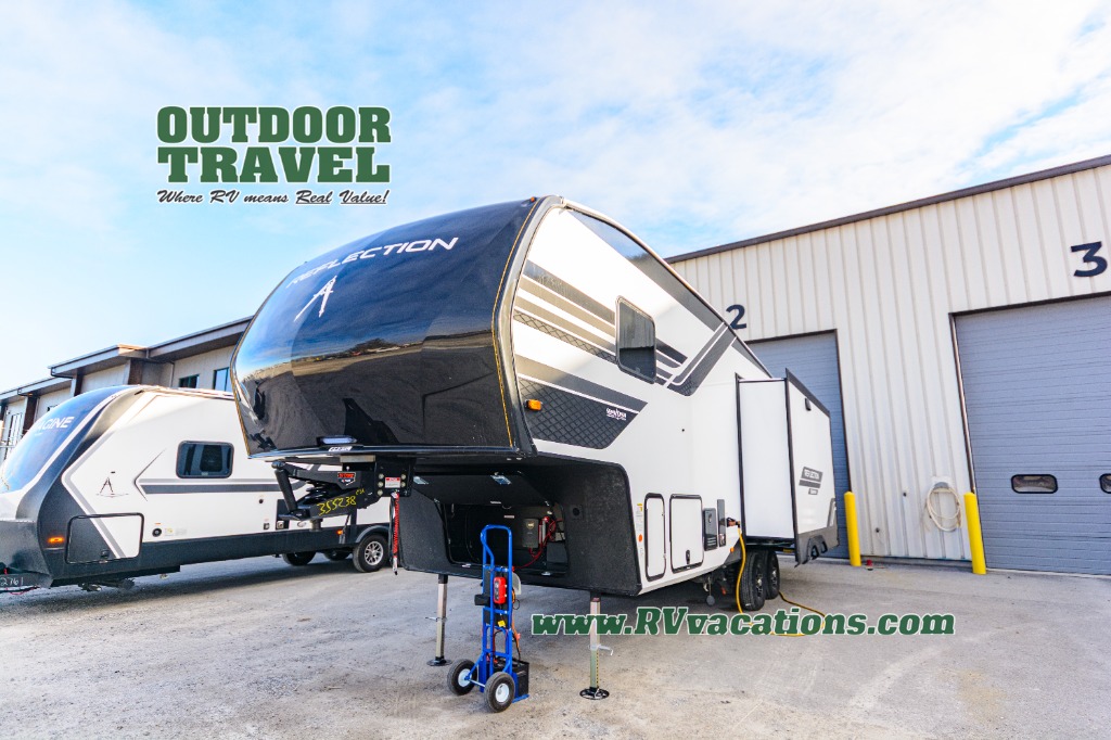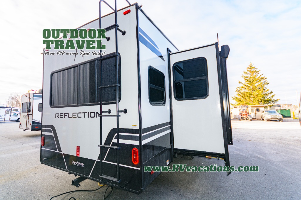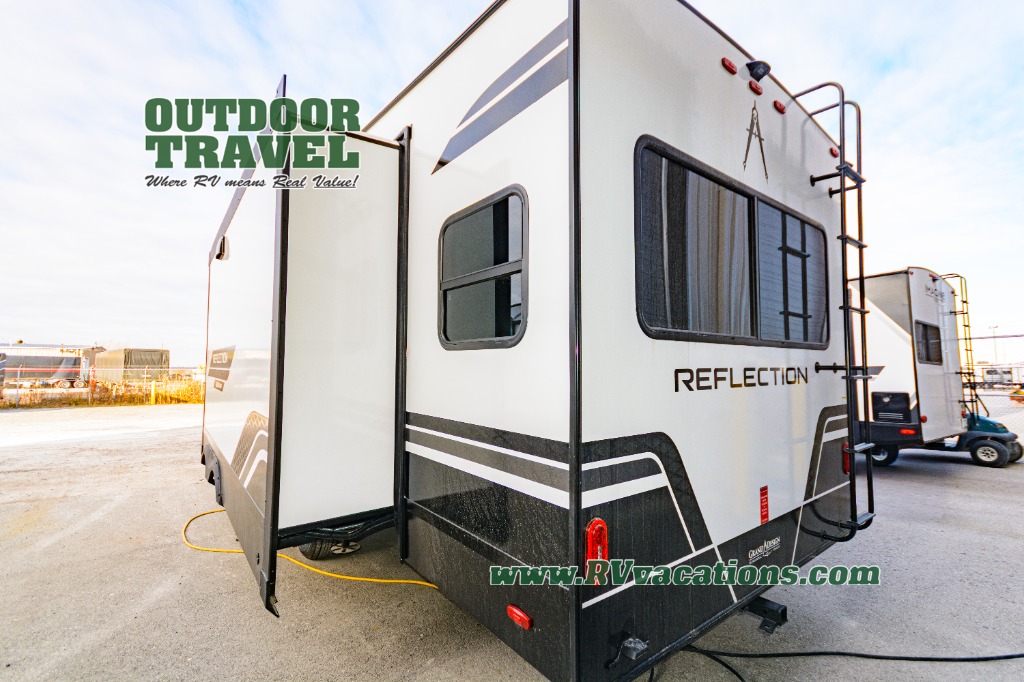 With any Reflection 150 Series fifth wheel by Grand Design, there is more available payload capacity and a broader range of half-ton trucks capable of towing this fifth wheel, and no slider hitch is needed thanks to the 90-degree turning radius which makes them short bed friendly and easier to tow. The mandatory Ultimate Power package provides a "One-Touch" automatic leveling system and a detachable power cord with LED light for easy setup, plus motion sensor pass-through lighting and entry lighting, and the Tire Linc TPMS will help you stay safe on the road. The interior offers residential cabinetry and premium Congoleum flooring, to the booth dinette and residential-style window treatment. Make your refined decision today!