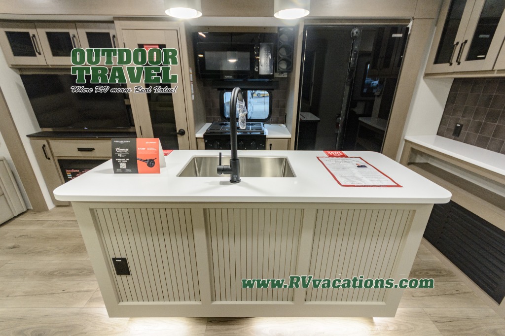 With any Reflection travel trailer by Grand Design, you will have a solar panel for off-grid camping and a 60 amp charge controller and inverter prep, a Universal All-In-One docking station, unobstructed pass-through storage, and Goodyear Endurance tires. Each is constructed of gel coat exterior sidewalls, residential 5" truss rafters, walk-on roof decking, a fiberglass and radiant foil roof and front cap insulation plus laminated aluminum framed side walls, roof and end walls in slide rooms. Head inside to enjoy residential hardwood cabinet doors, premium Congoleum flooring, a spacious shower with a glass door, and many more comforts!