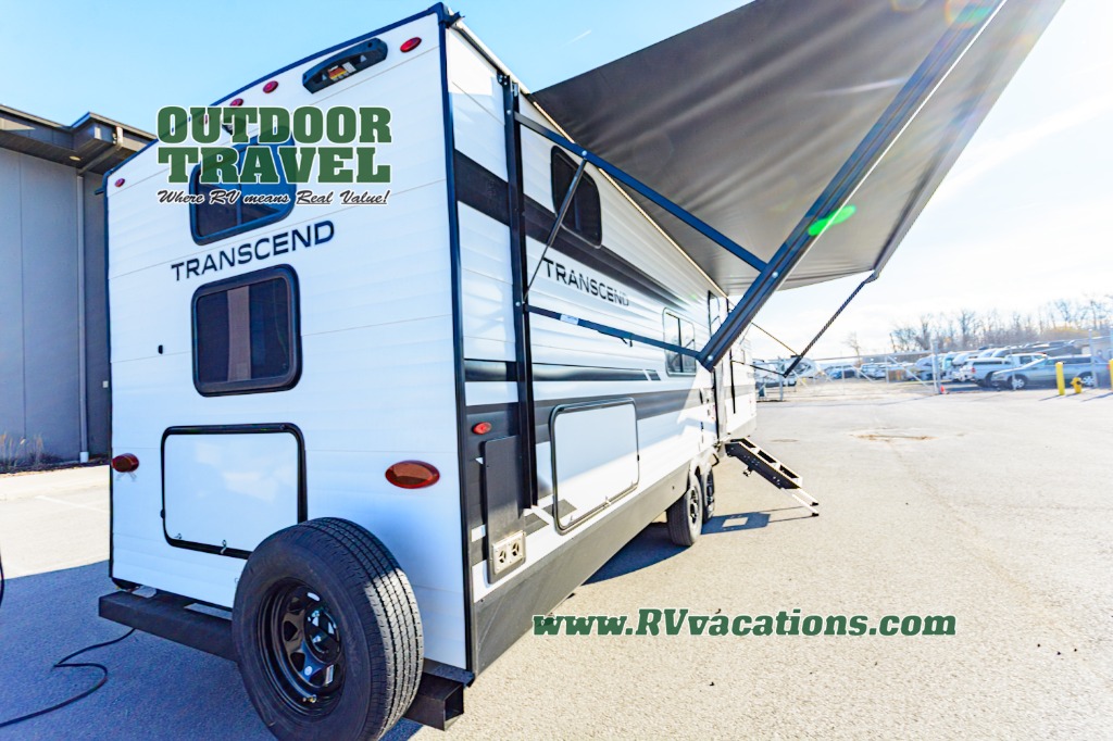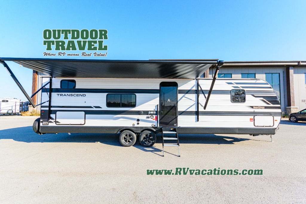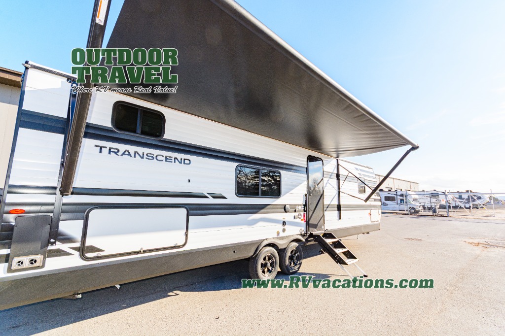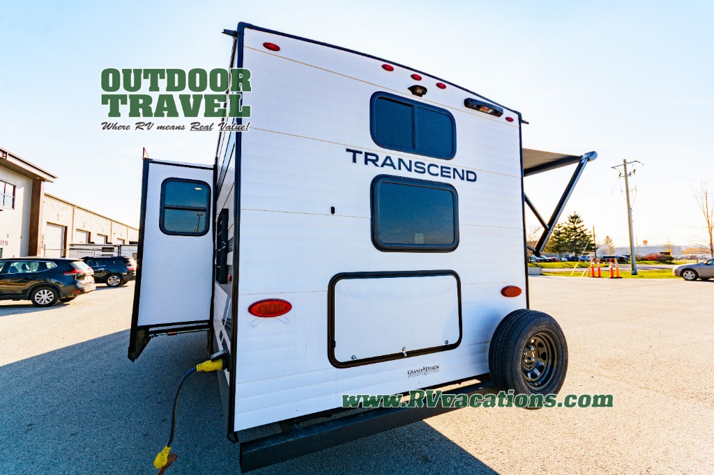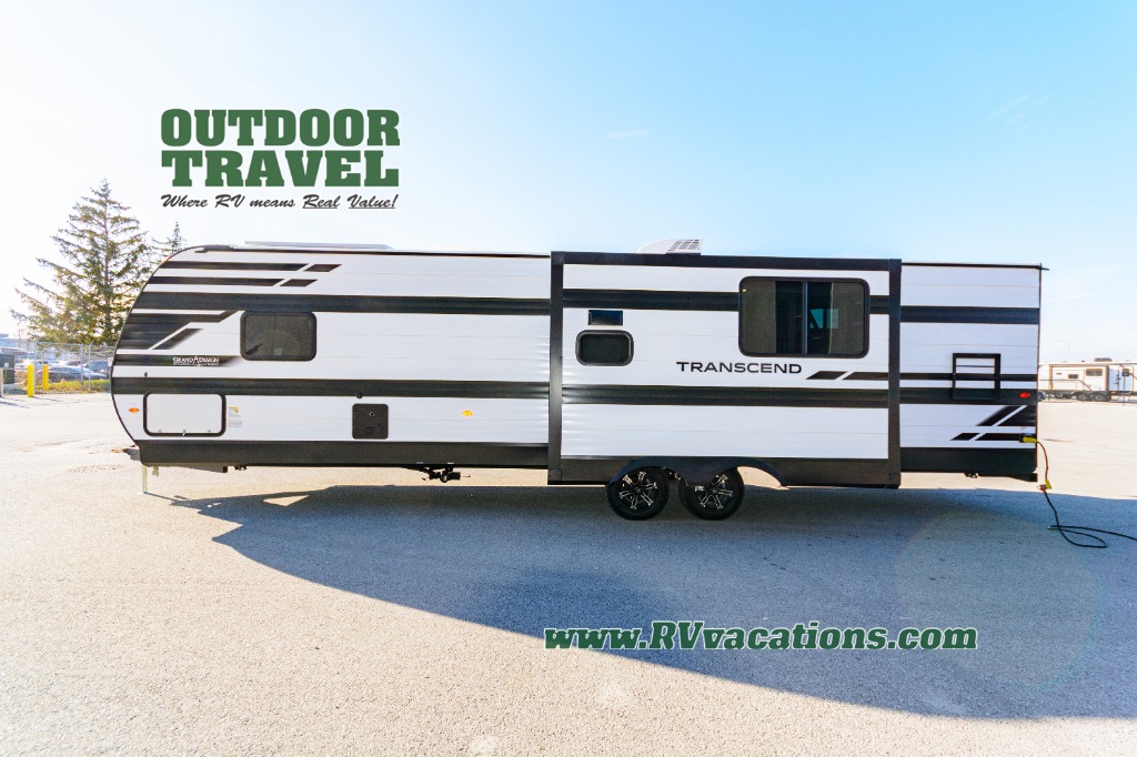 With any Transcend travel trailer by Grand Design, you will enjoy upscale appointments and convenient amenities to make each camping experience one to remember! The Quad Seal technology, residential insulated walls, plus heated and enclosed underbelly with suspended tanks make these units solid and durable. There is a black automotive glass door outside, along with a Safe-T-Rail assist on the main entry door, backup camera prep, and a universal docking station. JBL interior and exterior speakers plus a JBL head unit will let you listen to your favorite tunes as you visit under the power awning with LED strip lights. Inside, you'll enjoy multiple outlets to keep your gadgets charged, thermoformed and seamless countertops, and a 6' 6" interior height so you won't feel closed in. The Solar Prep Package will allow you to enjoy off-grid capabilities with a 200W solar panel, which is wired for up to 600W, a 30 AMP Bluetooth solar controller, a 2000W inverter prep, and more!