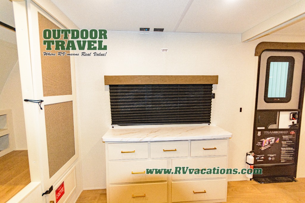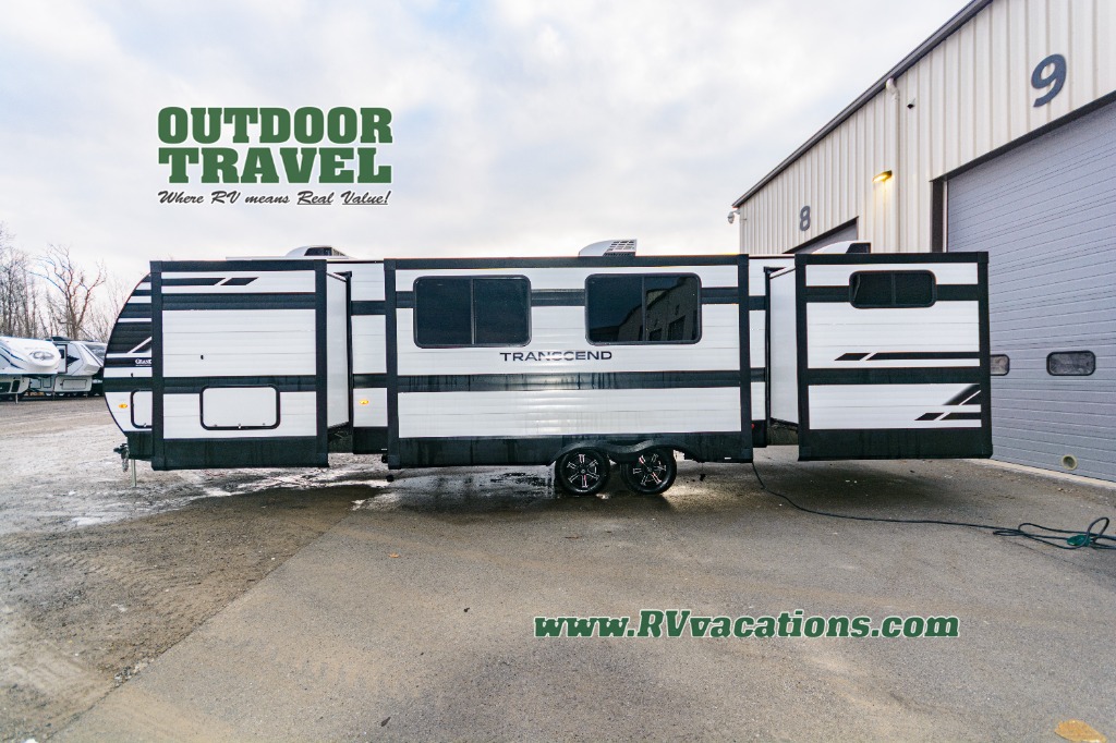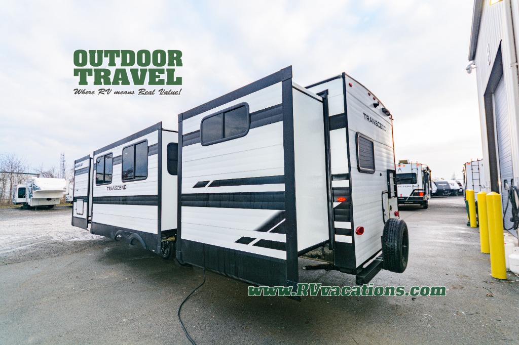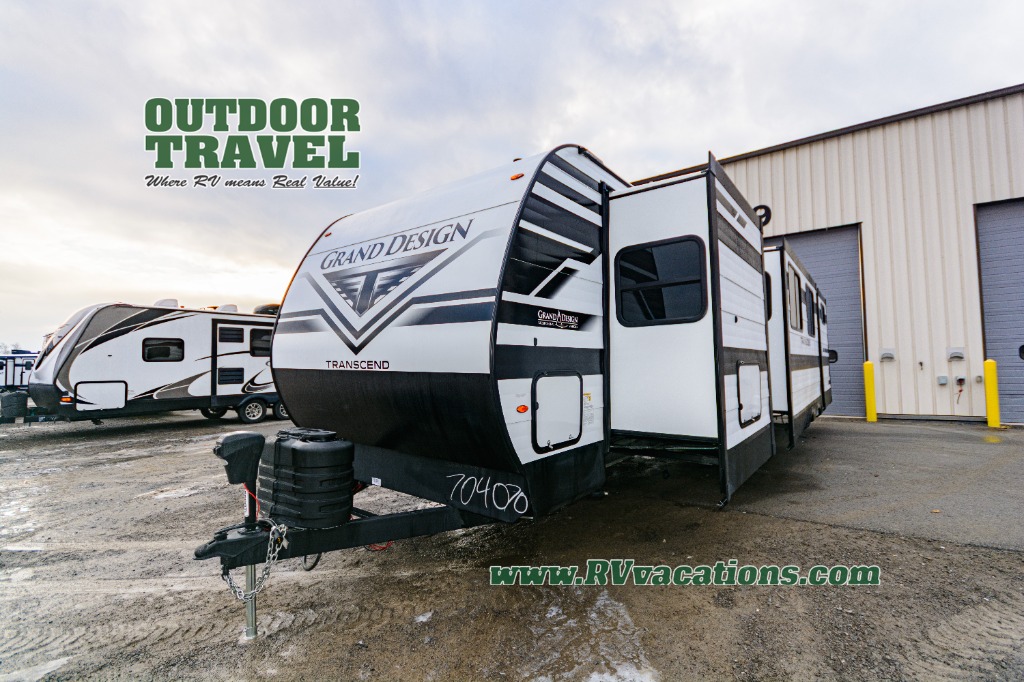 With any Transcend travel trailer by Grand Design, you will enjoy upscale appointments and convenient amenities to make each camping experience one to remember! The Quad Seal technology, residential insulated walls, plus heated and enclosed underbelly with suspended tanks make these units solid and durable. There is a black automotive glass door outside, along with a Safe-T-Rail assist on the main entry door, backup camera prep, and a universal docking station. JBL interior and exterior speakers plus a JBL head unit will let you listen to your favorite tunes as you visit under the power awning with LED strip lights. Inside, you'll enjoy multiple outlets to keep your gadgets charged, thermoformed and seamless countertops, and a 6' 6" interior height so you won't feel closed in. The Solar Prep Package will allow you to enjoy off-grid capabilities with a 200W solar panel, which is wired for up to 600W, a 30 AMP Bluetooth solar controller, a 2000W inverter prep, and more!