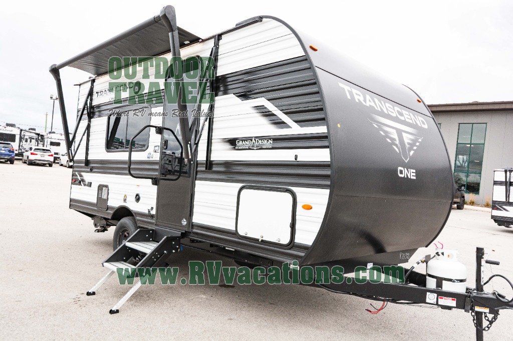 With any Transcend One travel trailer by Grand Design, you will enjoy lightweight towing thanks to their single-axle. There are many interior comforts to make camping easier than ever, such as recessed lighting, residential countertops, and a 6' 6" interior height. Each model is constructed with a heated and enclosed underbelly with suspended tanks, a moisture barrier floor enclosure, and Thermofoil over the roof and front cap for added protection. And a JBL sound system will let you listen to tunes as you visit under the power awning with a Fusion light!