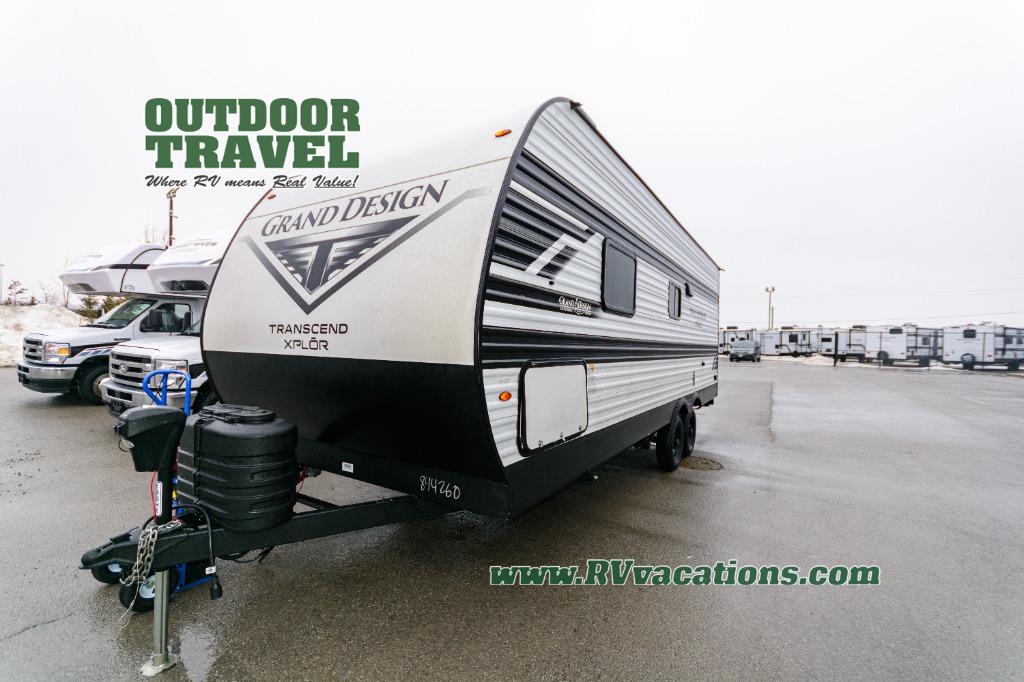 The customer-focused, quality-built Transcend Xplor travel trailers by Grand Design are your ticket to fun and adventure. You will appreciate the power tongue jack when it comes time to set up, as well as the all-in-one utility center and the detachable power cord with an LED light. These models include many outlets throughout, USB ports to charge your gadgets, and a JBL exterior speaker to listen to your favorite tunes. The interior of the Transcend Xplor will have you feeling right at home with upgraded residential furniture, residential countertops, residential cabinet doors, and the list goes on!