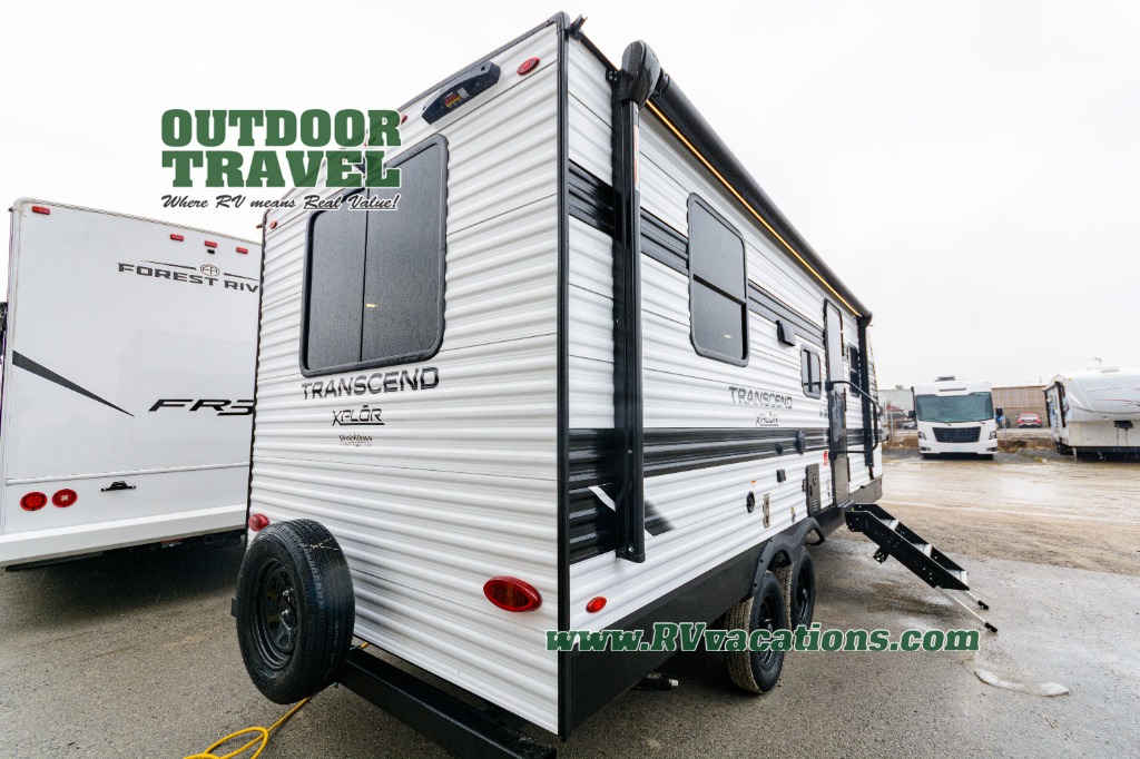 The customer-focused, quality-built Transcend Xplor travel trailers by Grand Design are your ticket to fun and adventure. You will appreciate the power tongue jack when it comes time to set up, as well as the all-in-one utility center and the detachable power cord with an LED light. These models include many outlets throughout, USB ports to charge your gadgets, and a JBL exterior speaker to listen to your favorite tunes. The interior of the Transcend Xplor will have you feeling right at home with upgraded residential furniture, residential countertops, residential cabinet doors, and the list goes on!