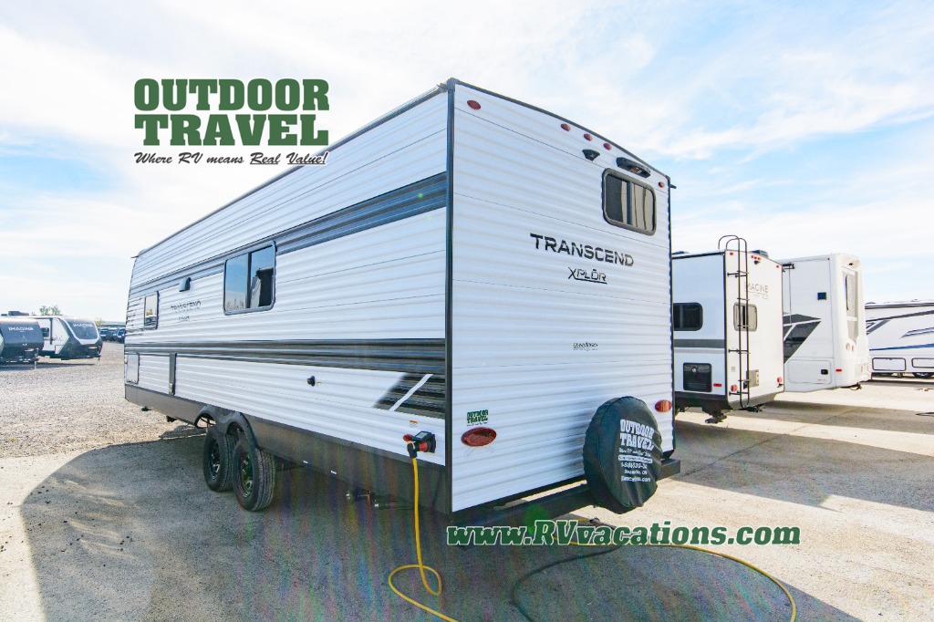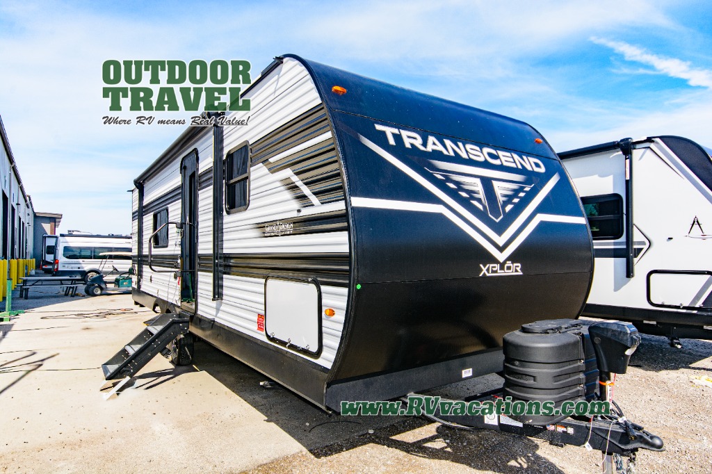 The customer-focused, quality-built Transcend Xplor travel trailers by Grand Design are your ticket to fun and adventure. You will appreciate the power tongue jack when it comes time to set up, as well as the all-in-one utility center and the detachable power cord with an LED light. These models include many outlets throughout, USB ports to charge your gadgets, and a JBL exterior speaker to listen to your favorite tunes. The interior of the Transcend Xplor will have you feeling right at home with upgraded residential furniture, residential countertops, residential cabinet doors, and the list goes on!