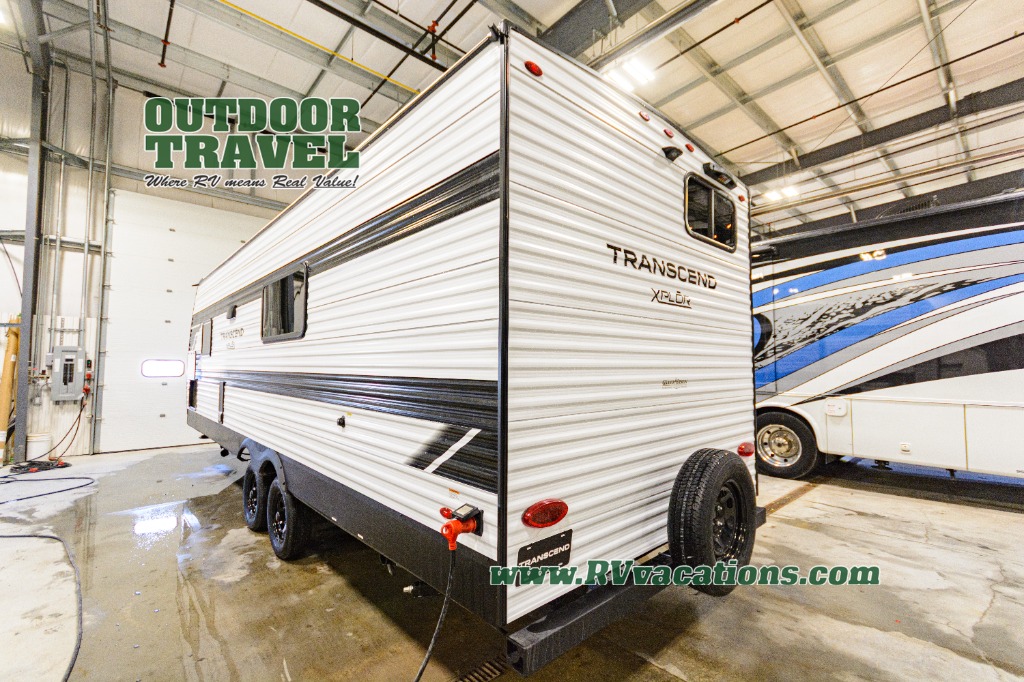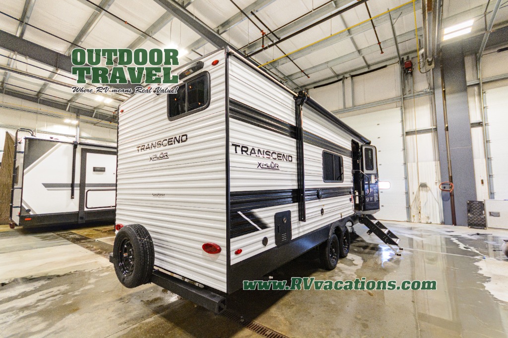 The customer-focused, quality-built Transcend Xplor travel trailers by Grand Design are your ticket to fun and adventure. You will appreciate the power tongue jack when it comes time to set up, as well as the all-in-one utility center and the detachable power cord with an LED light. These models include many outlets throughout, USB ports to charge your gadgets, and a JBL exterior speaker to listen to your favorite tunes. The interior of the Transcend Xplor will have you feeling right at home with upgraded residential furniture, residential countertops, residential cabinet doors, and the list goes on!