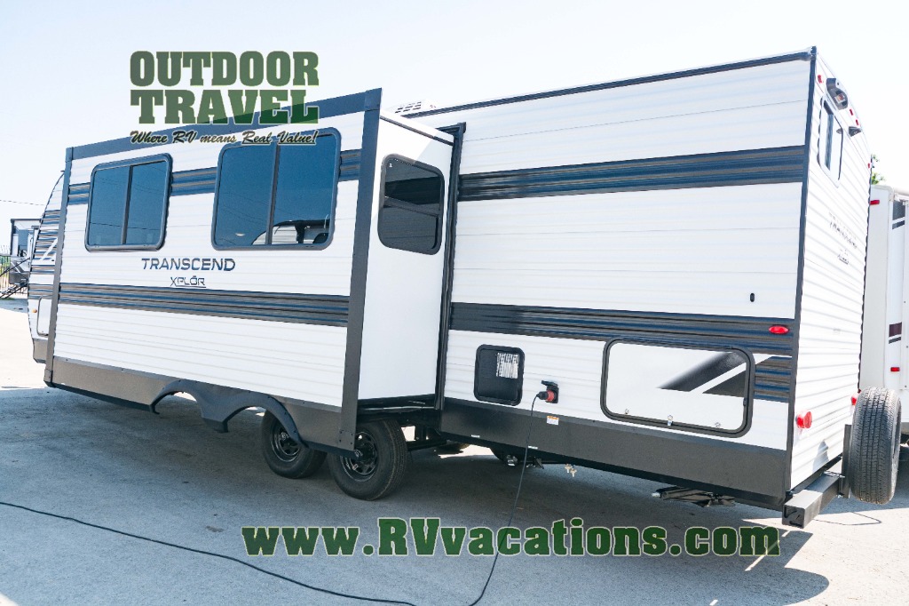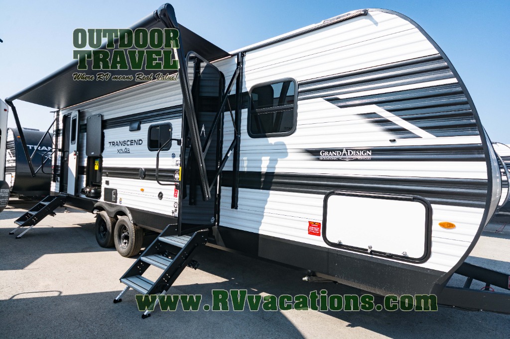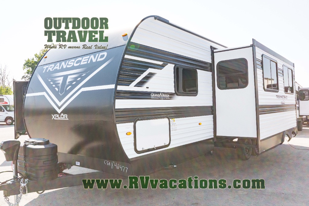 The customer-focused, quality-built Transcend Xplor travel trailers by Grand Design are your ticket to fun and adventure. You will appreciate the power tongue jack when it comes time to set up, as well as the all-in-one utility center and the detachable power cord with an LED light. These models include many outlets throughout, USB ports to charge your gadgets, and a JBL exterior speaker to listen to your favorite tunes. The interior of the Transcend Xplor will have you feeling right at home with upgraded residential furniture, residential countertops, residential cabinet doors, and the list goes on!
