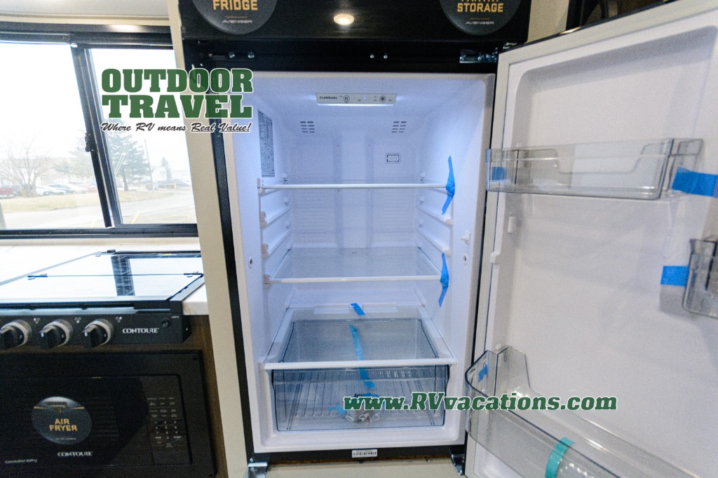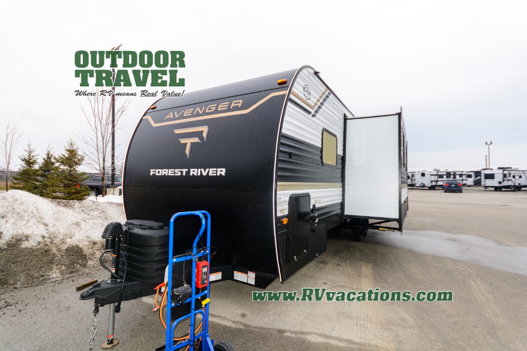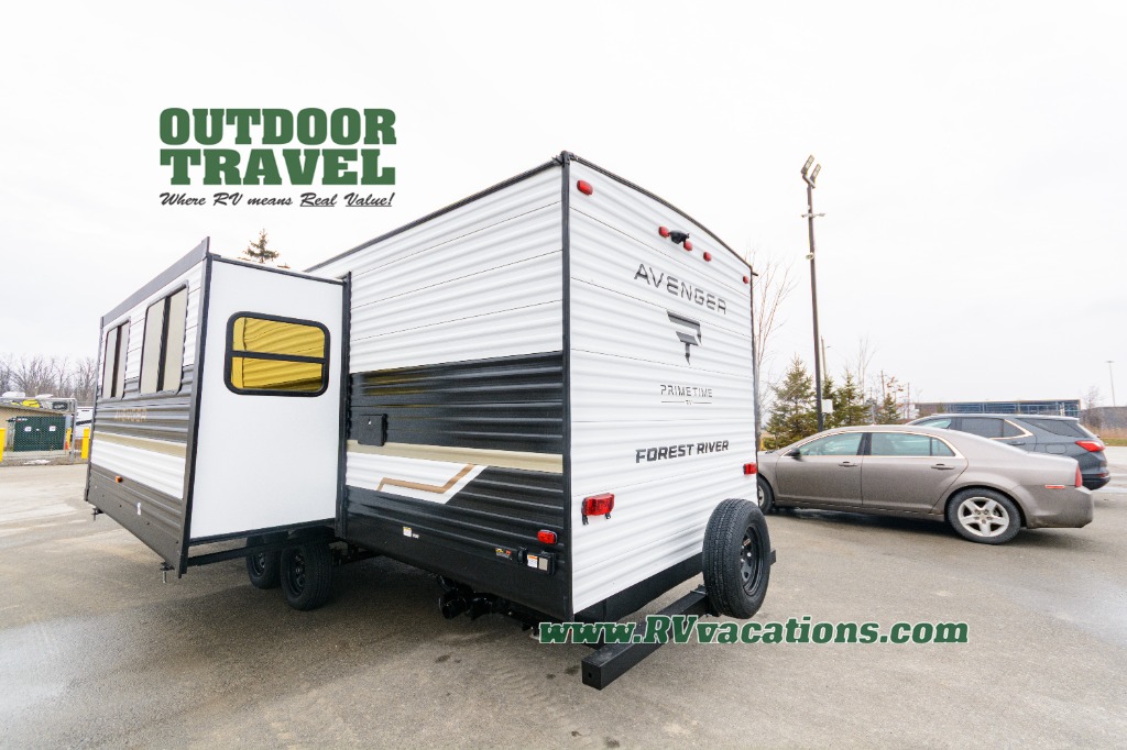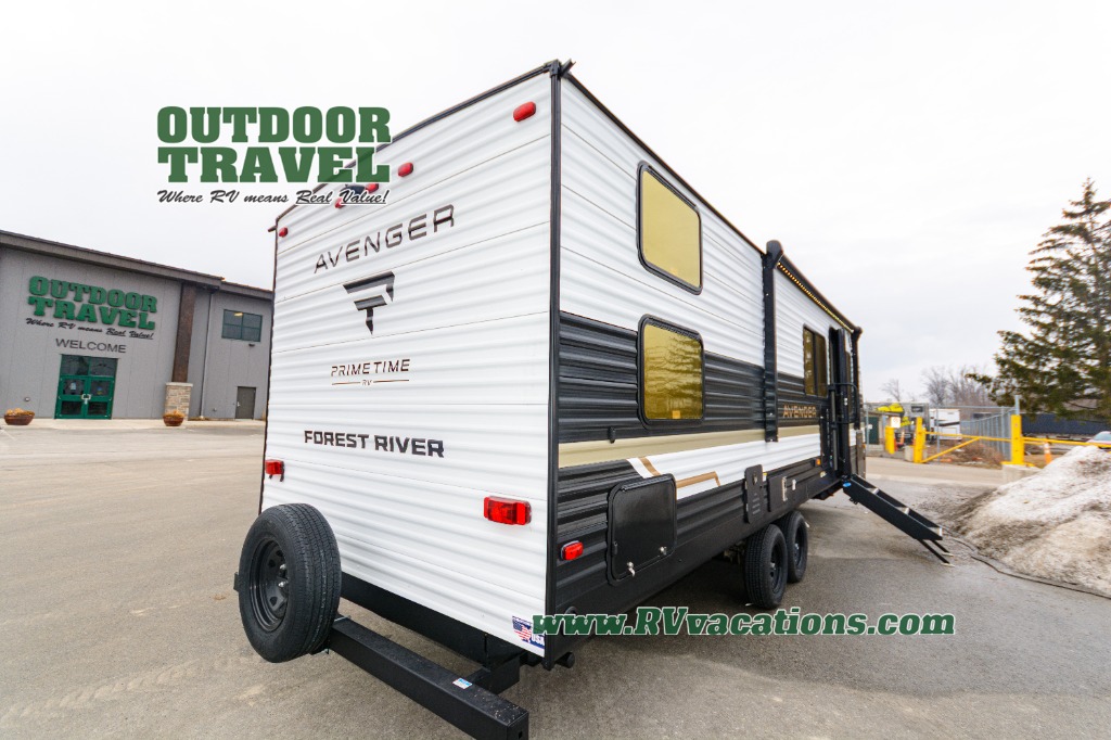 With any Avenger travel trailer by Prime Time RV, you will find innovation, a solid build, and comfort at every turn. Each model is built with Tuff Coat on the exterior metal, a fully enclosed underbelly, and a PVC roof membrane to help extend the life of your trailer. You will also find automotive name badging on the exterior, along with an exterior shower, front rail LED light strips, plus an XL padded entry grab handle to name a few conveniences. There are plenty of storage spaces inside, as well as Congoleum flooring and woven PVC marine grade slide out flooring, a designer shower surround, and seamless pressed countertops. You are sure to appreciate the onboard water filtration system, tankless water heater, plus 30K BTU furnace and 15K ducted A/C to help keep you comfortable.
