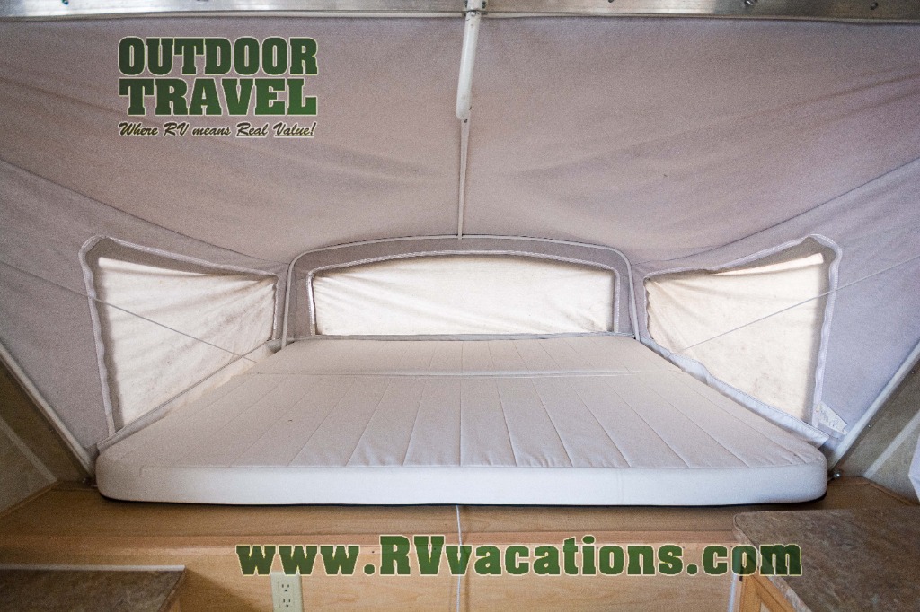 Nice hybrid trailer with two tip outs and a slide out making it a very spacious trailer when all opened up.