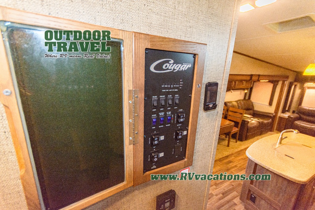 As you make your way around the rest of this Cougar unit you will find that storage is not a problem with an abundance of overhead cabinetry, closets, and storage cupboards throughout.