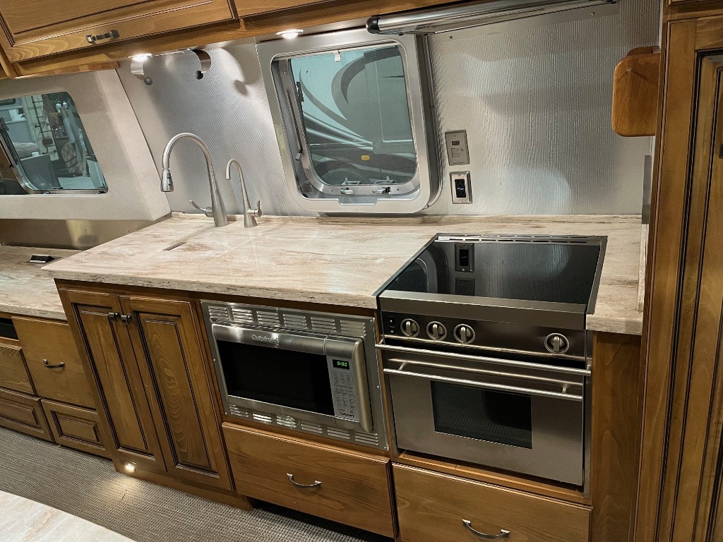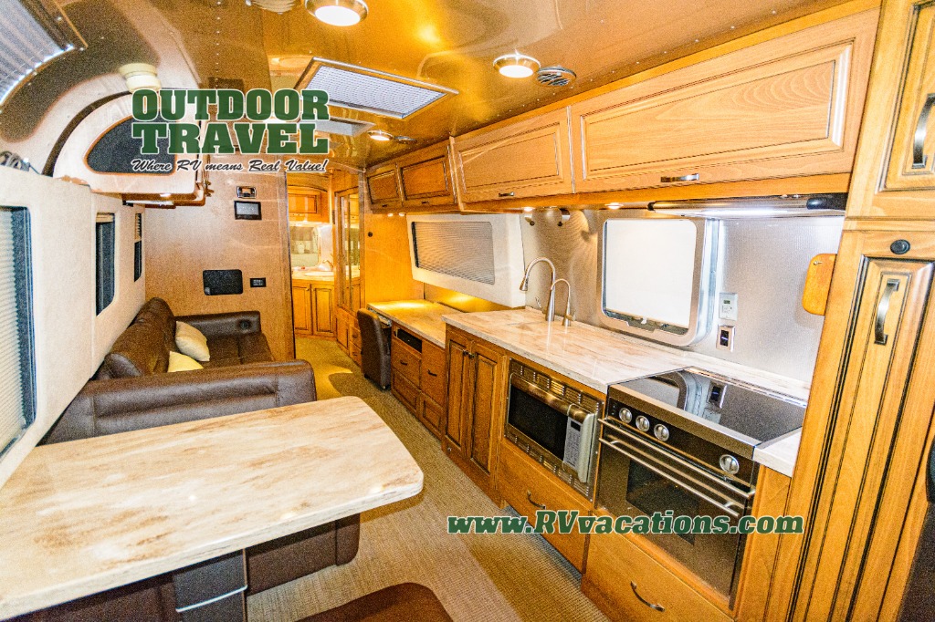 No matter how long your journey may last, you will want an Airstream Classic travel trailer. You will enjoy plenty of features such as a Multiplex control panel that with the touch of a button you can control lighting and technology. While you are away from home you can enjoy a variety of entertainment features such as a Polk stereo with XM/AM/FM Satellite radio and Bluetooth, a 65" or 32" living room TV depending on the model, plus a Blu-Ray DVD player. Each kitchen has enough features throughout to make you feel like you are still at home from the three burner gas cook top to the Corian countertops you will enjoy all of the space!