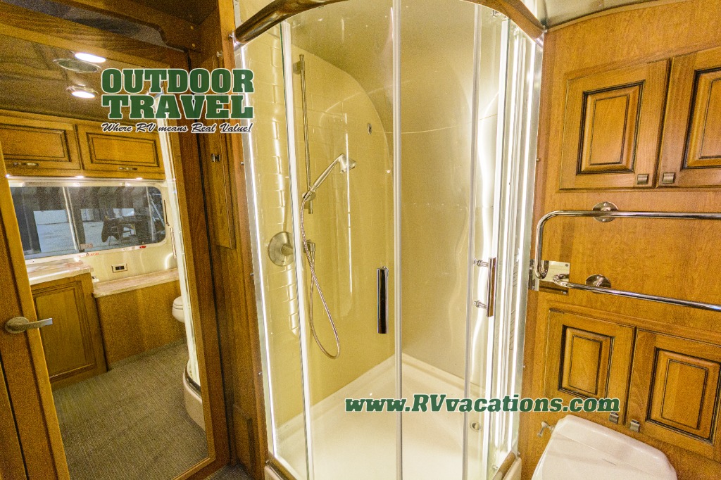 If you enjoy traveling with the comforts of home, then take a step inside this Airstream RV Classic 33FB Twin travel trailer where you will find a front bedroom with two 36" x 80" twin beds, plus plenty of other conveniences. If you have a little work to do then the desk cabinet will be handy. The rear bathroom is spacious and has a large wardrobe plus a 36" x 44" shower with a heated floor.