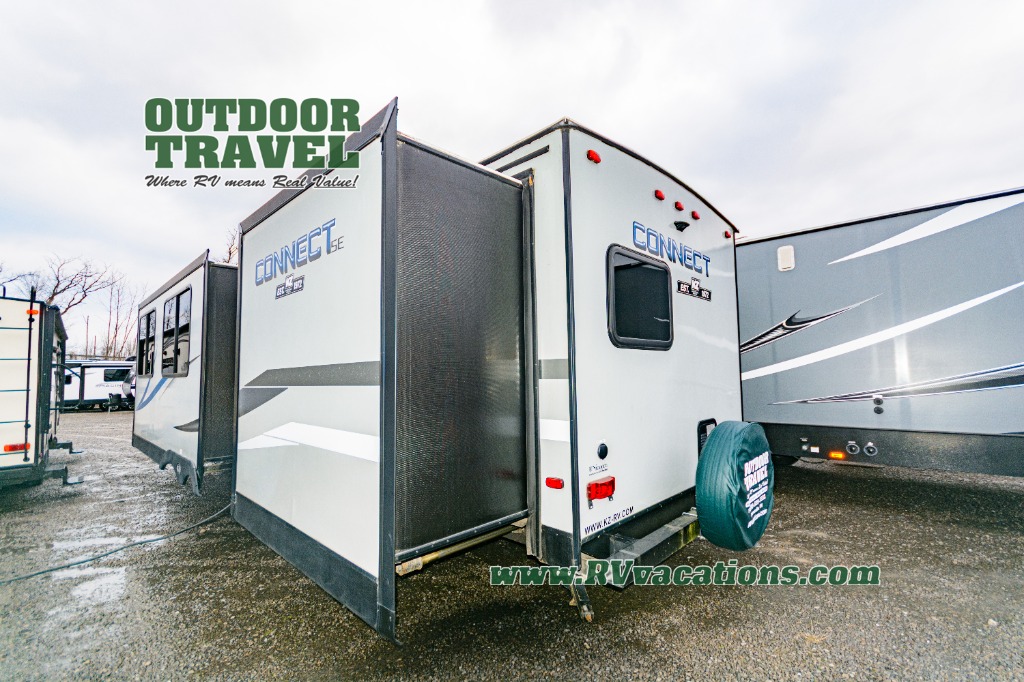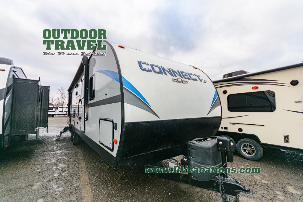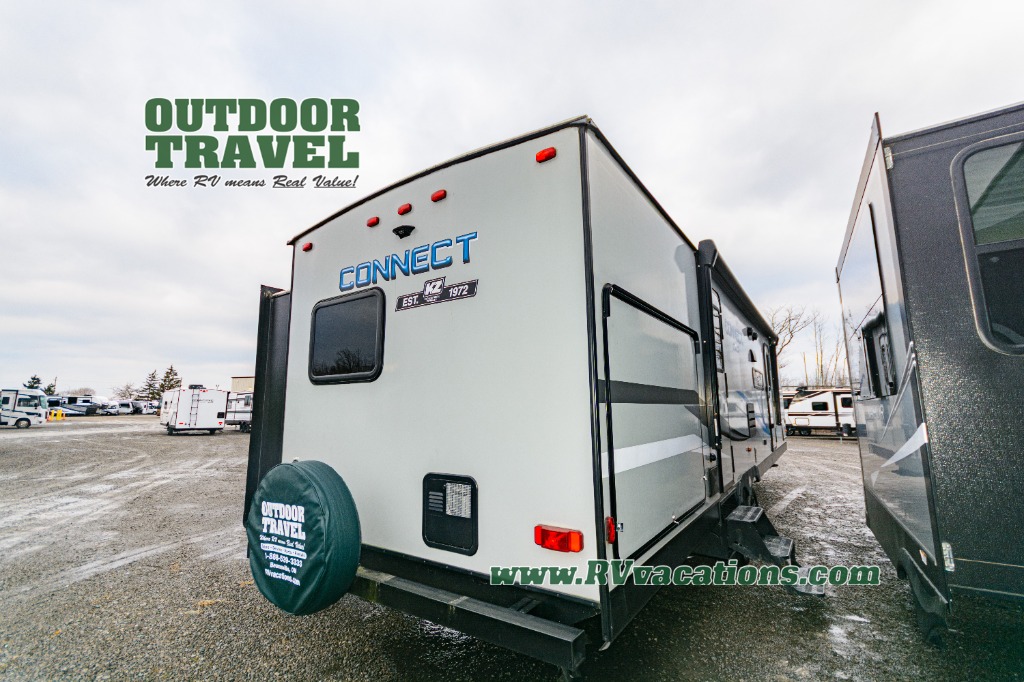 The legendary workmanship that you have always appreciated from KZ RV is clearly evidenced in its brand-new line of ultra-lightweight Connect SE travel trailers! With slide outs in every floor plan, the spacious interior feels welcoming and inviting for all who travel with you, and with all of the multimedia features that have been included throughout the Connect SE, like the stereo with Bluetooth and LED lights on the exterior speakers, you will enjoy endless hours of entertainment during each getaway. The foundation of the Connect SE is just as impressive as its interior with its one-piece seamless roof that has Tufflex roofing material, its UVA and UVB-resistant gelcoat Lamilux® exterior, and its 3/8" fully walk-on roof decking. You will also enjoy the beautiful interior styling that comes from the rich woodbridge maple cabinetry, hand-crafted mortise and tenon glazed cabinet doors, and residential-grade linoleum.