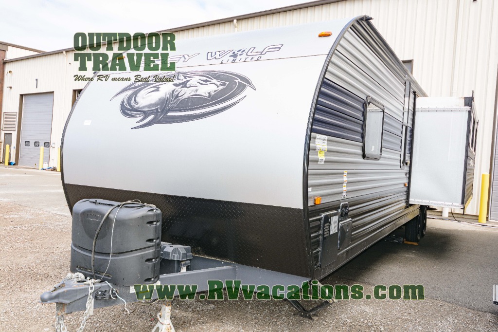 Whether it's a journey that will take you to new locations or a tried-and-true getaway to that favorite and memorable destination, the Forest River Cherokee Grey Wolf travel trailers and toy haulers are going to make the trip worth it every single time! You can travel in confidence with the premium wheel package, seamless roofing membrane with heat reflectivity, Power Gear frame technology with space-saver rail design, and Cherokee back-up camera system. The Cherokee Grey Wolf's interior is highly attractive with its stainless steel kitchen suite package, premium bedding ensemble and comforter, and 8" ceiling-mounted subwoofer with accent lighting. You will also find a black waste tank flush-out kit, an outside shower with hot and cold water, an armored underbelly tank enclosure, a power tongue jack, and an RV grill quick connect.