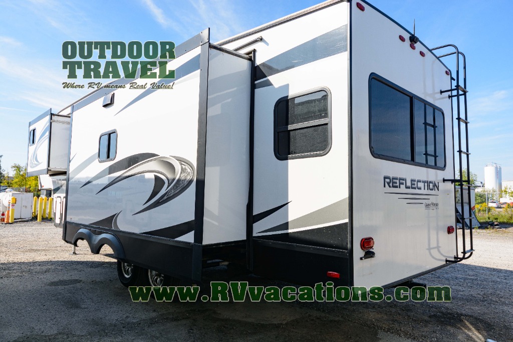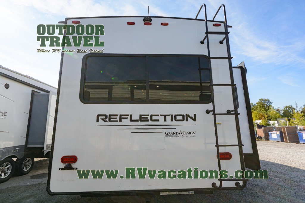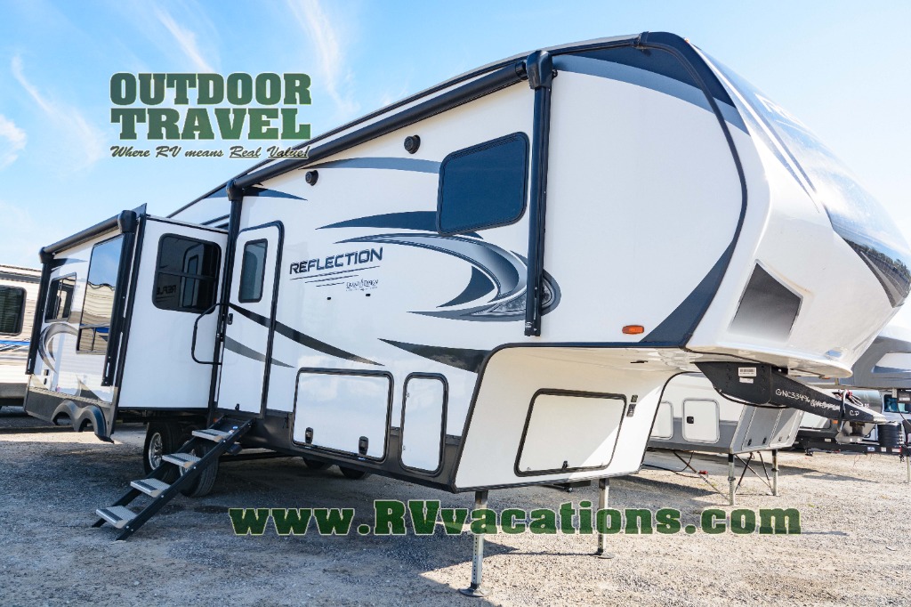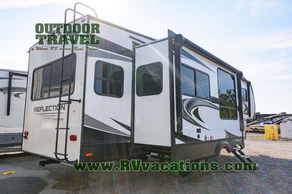 With any Reflection fifth wheels by Grand Design, you will have a 165W solar panel for off-grid camping and a 50 Amp charge controller and inverter prep, a Max Turn radius front cap for easy towing around town and into your campsite, a Universal All-In-One Docking Station, unobstructed pass-through storage, and Goodyear E-rated tires. Some other top features include a chef's kitchen with a 30" stainless steel microwave and residential cooktop, a USB charging station, and the ductless "Evenflow" heating system with no vents in the floor to collect debris. Each is constructed of high gloss gel coat exterior sidewalls, residential 5" truss rafters, walk-on roof decking, a fiberglass and radiant foil roof and front cap insulation plus laminated aluminum framed side walls, rear wall, roof and end walls in slide rooms. Choose luxury, value and towability over all the others, take home a Reflection of your good taste!