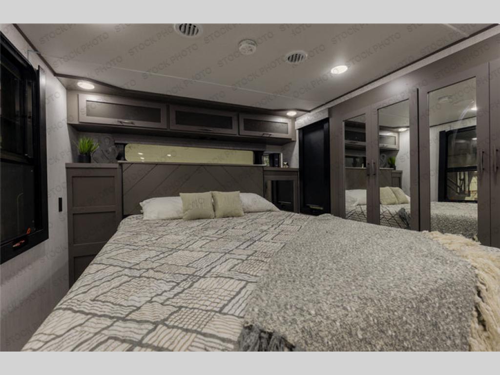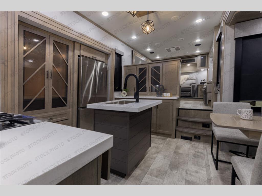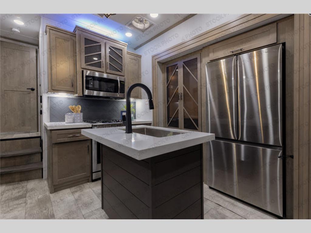 With any Momentum M-Class toy hauler by Grand Design, you will enjoy luxury at every turn! They have been constructed to a superior standard with a thermal roof design, triple insulated main floor and garage floor, and a Rail-Tite underbelly seal that will allow you to camp in all elements. Each model also features a, 8' 5" wide body chassis with a wide rail design, no wheel wheels, and a dovetail entry for easier loading. The Stealth A/C system provides maximum cooling power, and the CRE3000 suspension system means you can enjoy a smooth tow each time. You will love the luxurious interior with a professional grade stainless steel cooktop, interior color changing LED accent lighting, a fiberglass shower with a glass door, and solid surface countertops.
